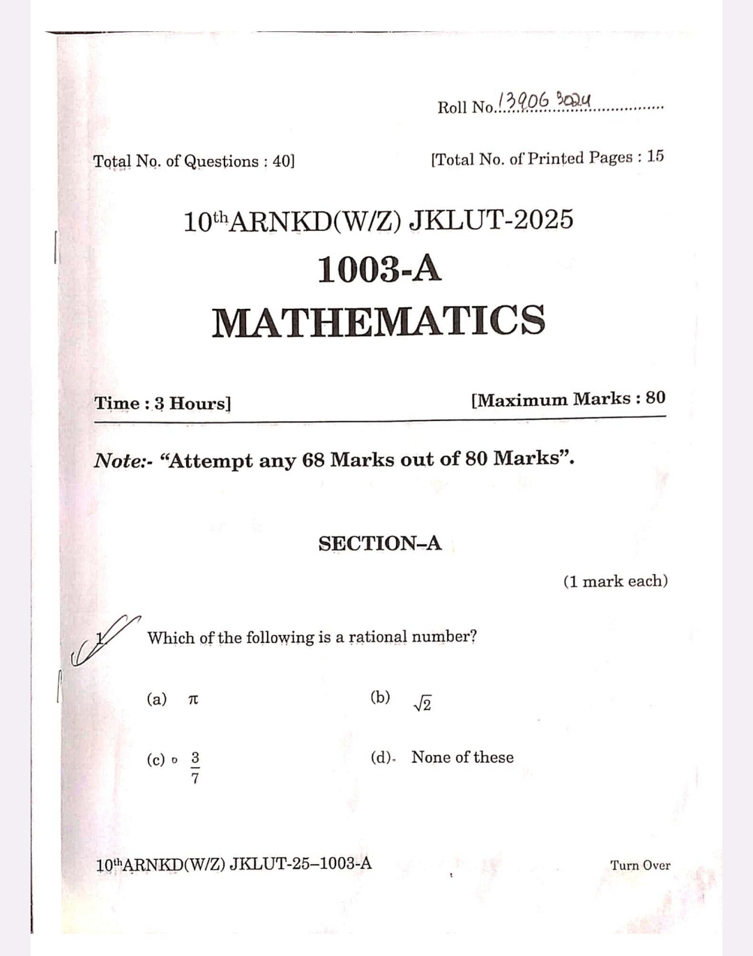 JKBOSE 10th Maths Paper Today: The JKBOSE Class 10th Mathematics exam was successfully held today, 03 November 2025, across Jammu and Kashmir under the Annual Regular 2025 session. The exam took place from 11:00 AM to 2:00 PM at various examination centers.