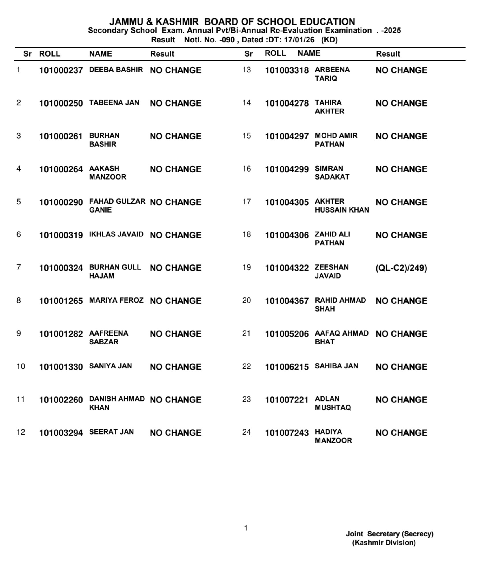 This update is based on the official JKBOSE Revaluation Gazette Notification No. 090 uploaded on Jan 19, 2026.